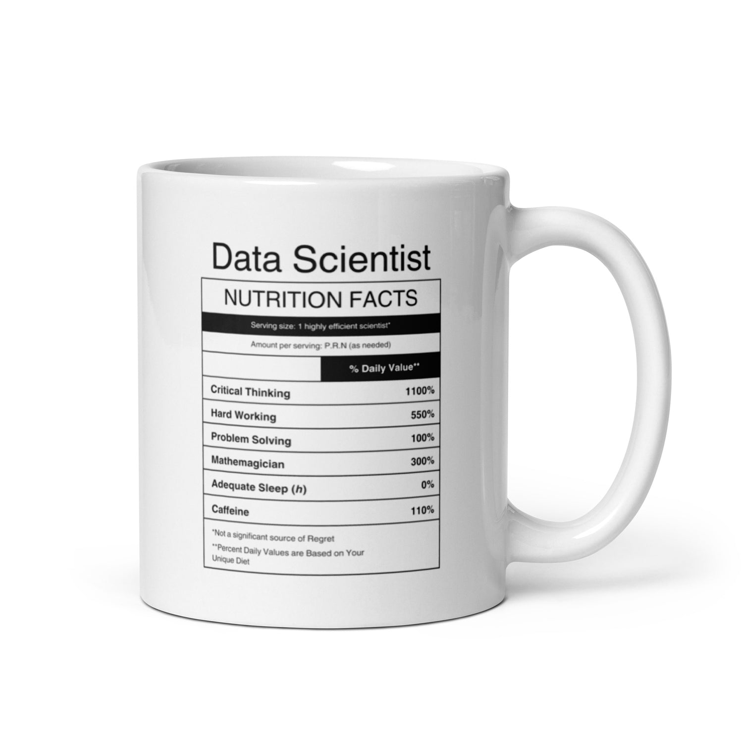 "Data Scientist Nutrition Facts" White Mug
